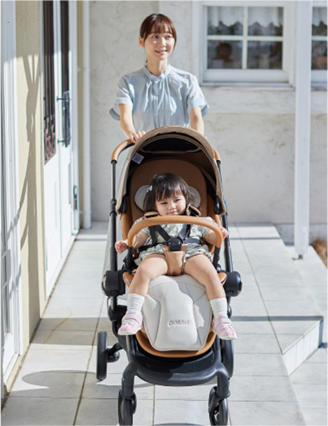 つけたままでもベビーカーをたためるように部分ごとに厚みを調整し、かつ赤ちゃんが快適に過ごせる理想の設計。
