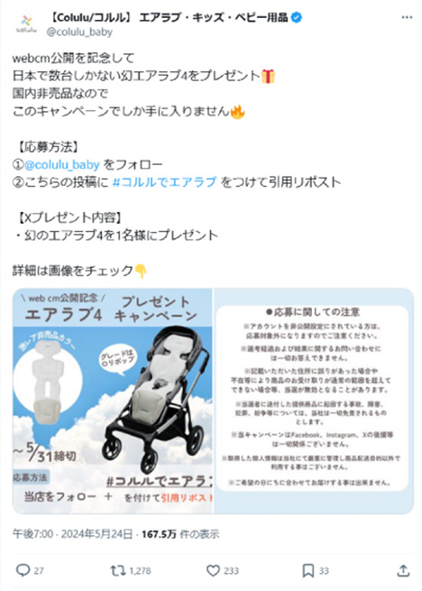 airluv.のマーケティングを開始。徹底した市場調査とSEO対策に加え、YouTubeでは辻希美さんとのコラボ動画を配信するなど、SNSを通して認知を拡大。さらにXやInstagramでフォトコンテストを開催するなど、ユーザー参加型の企画を積極的に行いUGCの増加を促し、一部のユーザーの間では社会現象とも言える盛り上がりを見せました。